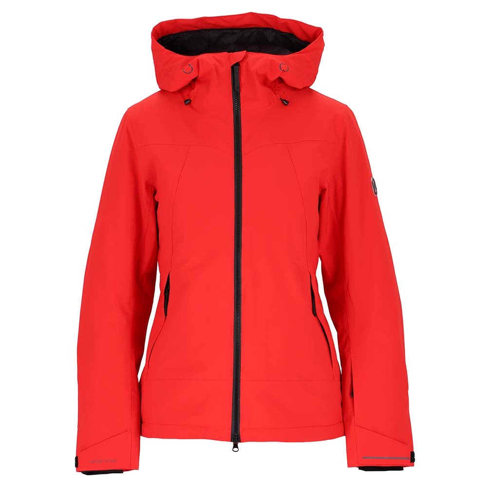 Naisten kevyt vanutakki. Vedenpitävyys ja hengittävyys 15 000 mm/g. Kaikki saumat teipattu. Ventilaatiot kainaloiden alla vetoketjuilla. Edessä vetoketju taskut. Säädettävä helma ja huppu. Hihansuu kiristimet.